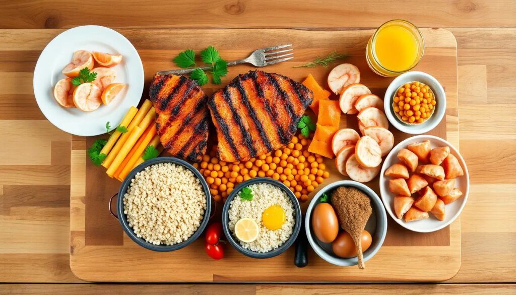 - Pechuga de pollo: rica en proteínas y baja en grasas.
