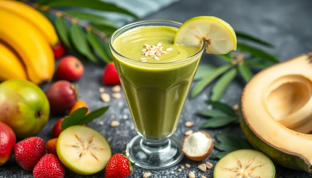 • Batido de espinacas y manzana: Rico en vitaminas y minerales.